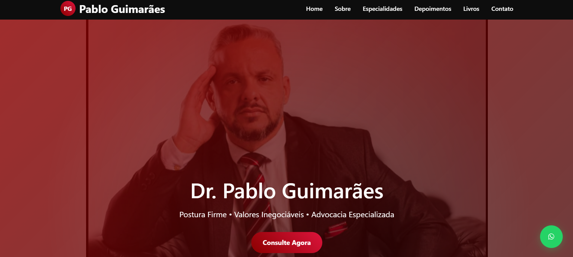 Criei uma presença online moderna, clara e profissional para um escritório de advocacia com mais de 22 anos de atuação, destacando sua experiência, valores e áreas de atuação, além de facilitar o contato de potenciais clientes.