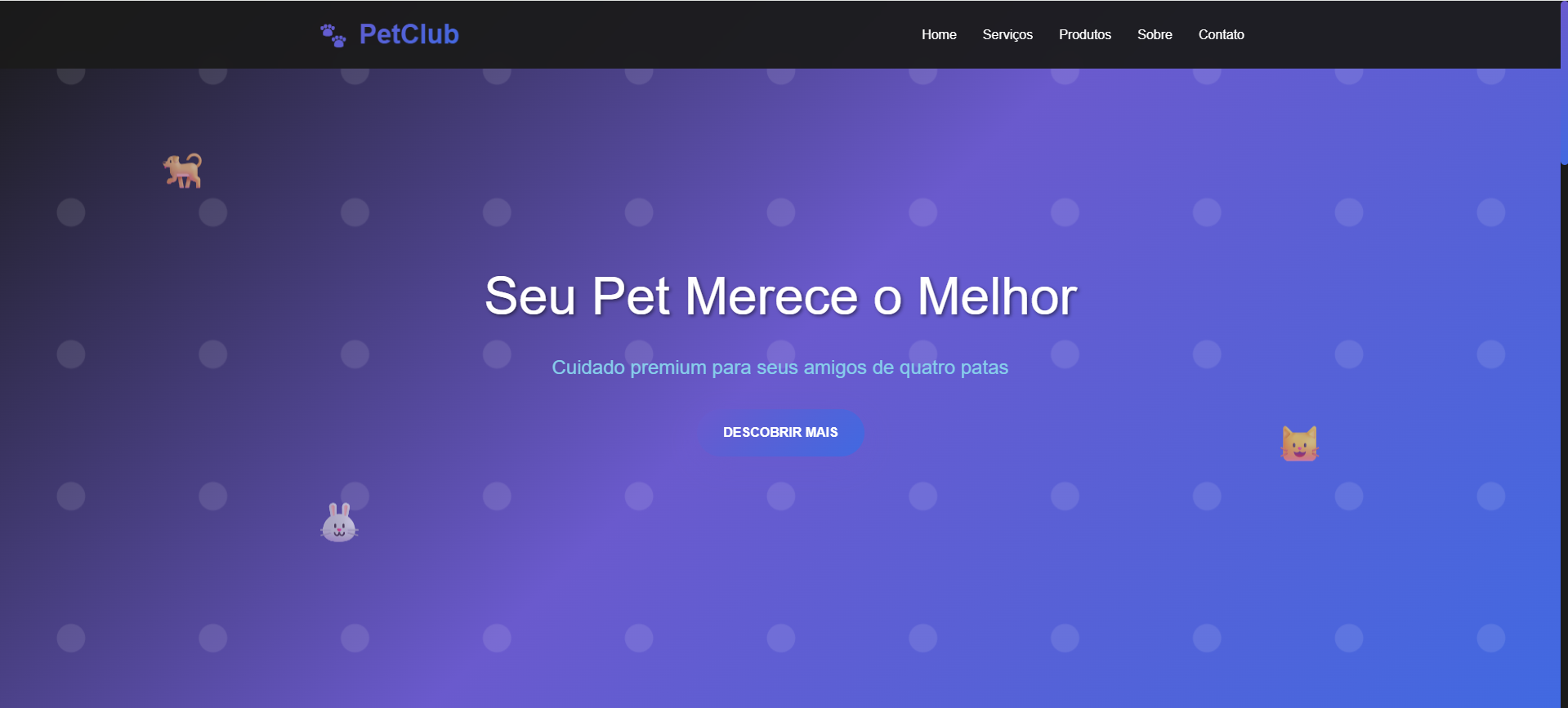Este é um projeto de site organizado e funcional que simula um petshop online e profissional, com objetivo de aprimorar habilidades. O foco principal é construção de um layout responsivo e design moderno voltado para o cuidado e bem-estar dos pets.